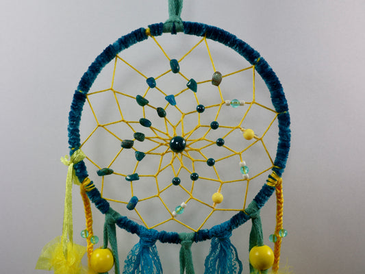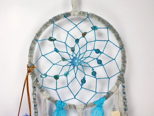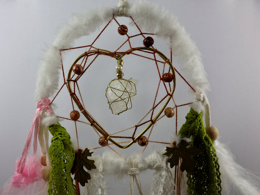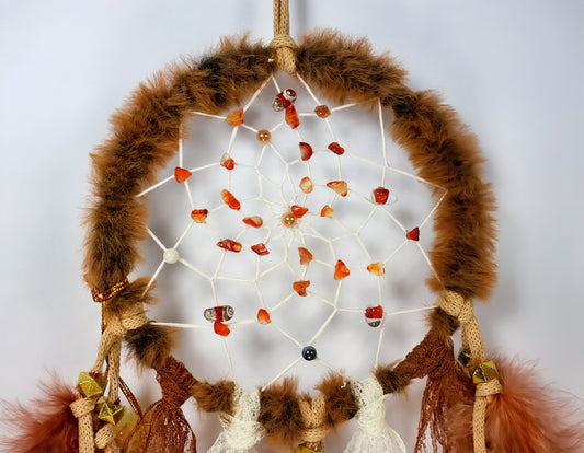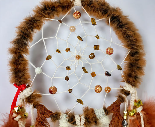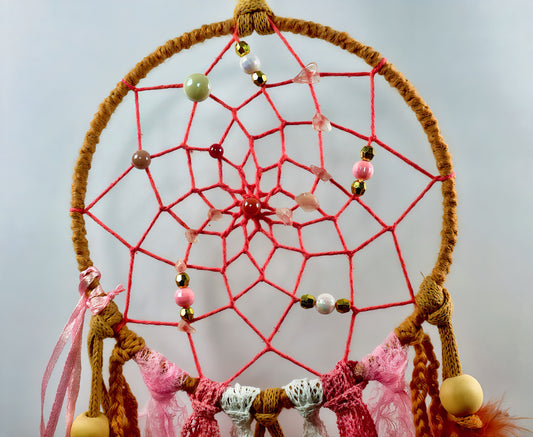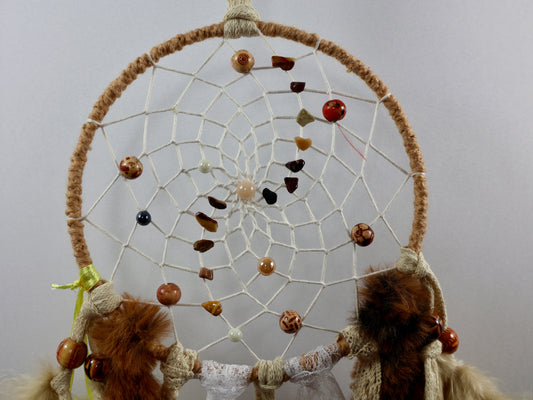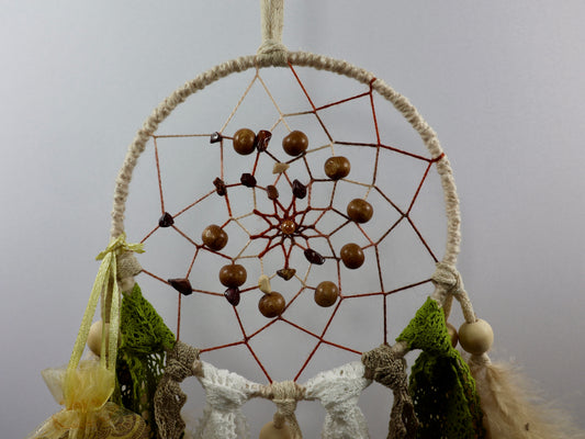 Laat je betoveren door onze handgemaakte dromenvangers van 15 cm – het perfecte formaat voor wie op zoek is naar een bijzondere, spirituele touch in huis. Elke dromenvanger wordt met zorg en aandacht vervaardigd, met gebruik van natuurlijke materialen en zorgvuldig gekozen edelstenen.