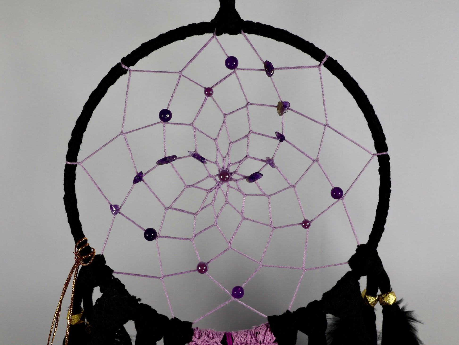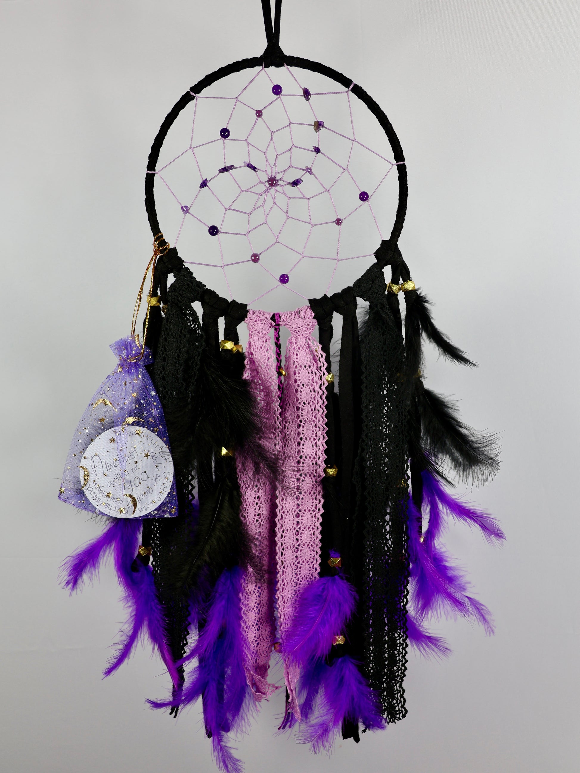 Al onze droomvangers zijn gevuld met echte edelstenen elk afgestemd op de het verhaal die het ontwerp verteld. Dat maakt elke droomvanger uniek, ze zijn handgemaakt van begin tot eind.