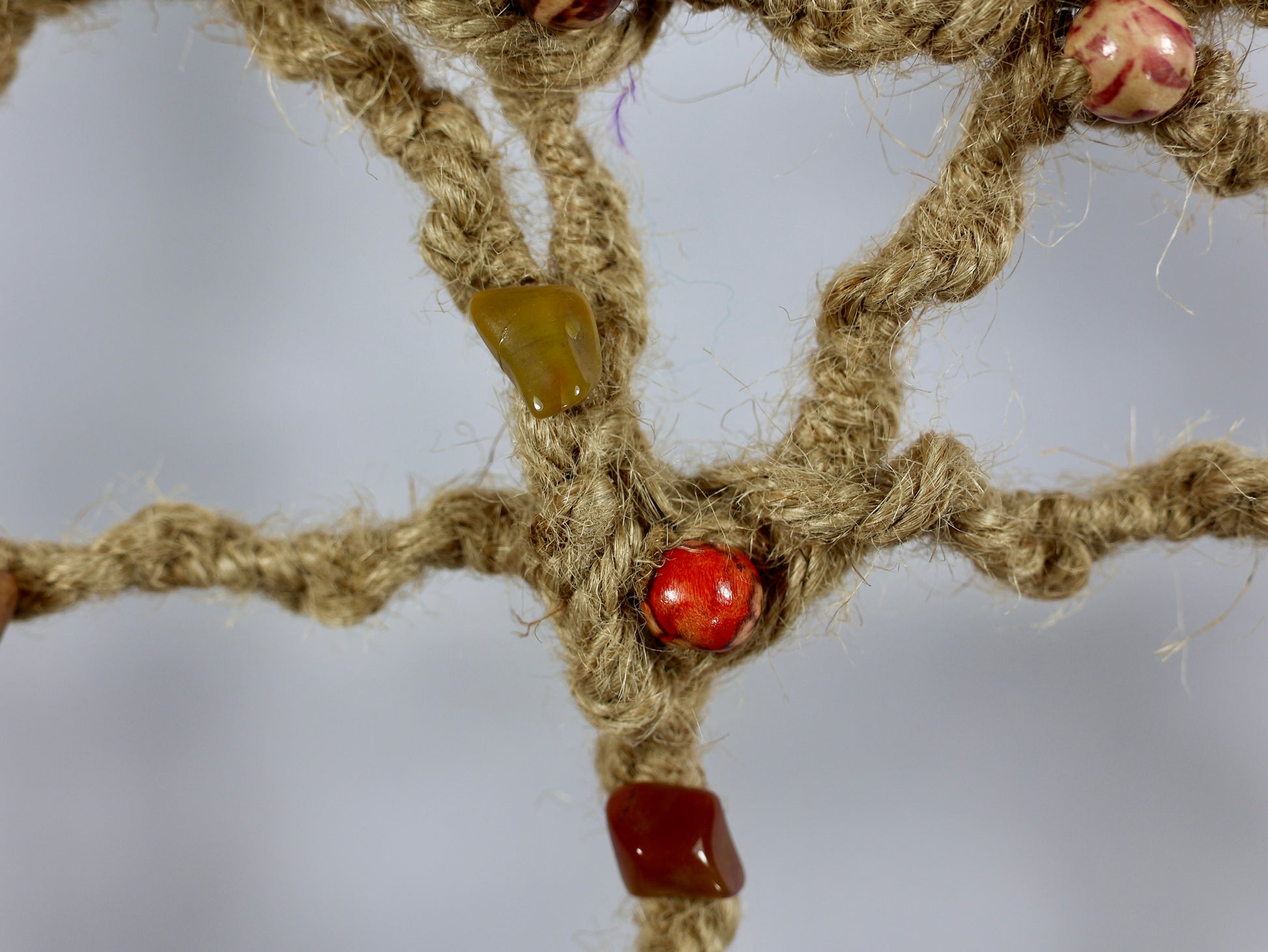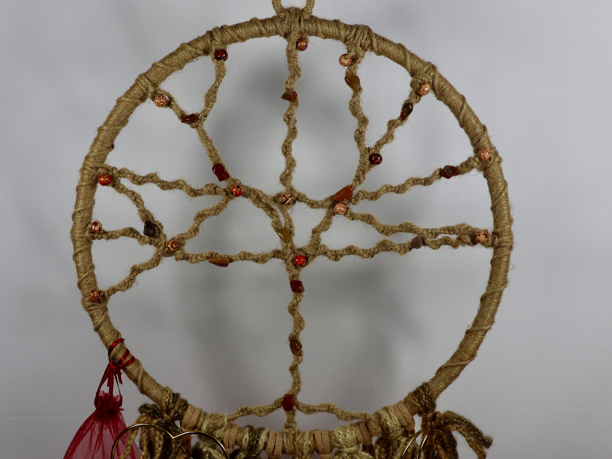 Al onze droomvangers zijn gevuld met echte edelstenen elk afgestemd op de het verhaal die het ontwerp verteld. Dat maakt elke droomvanger uniek, ze zijn handgemaakt van begin tot eind.