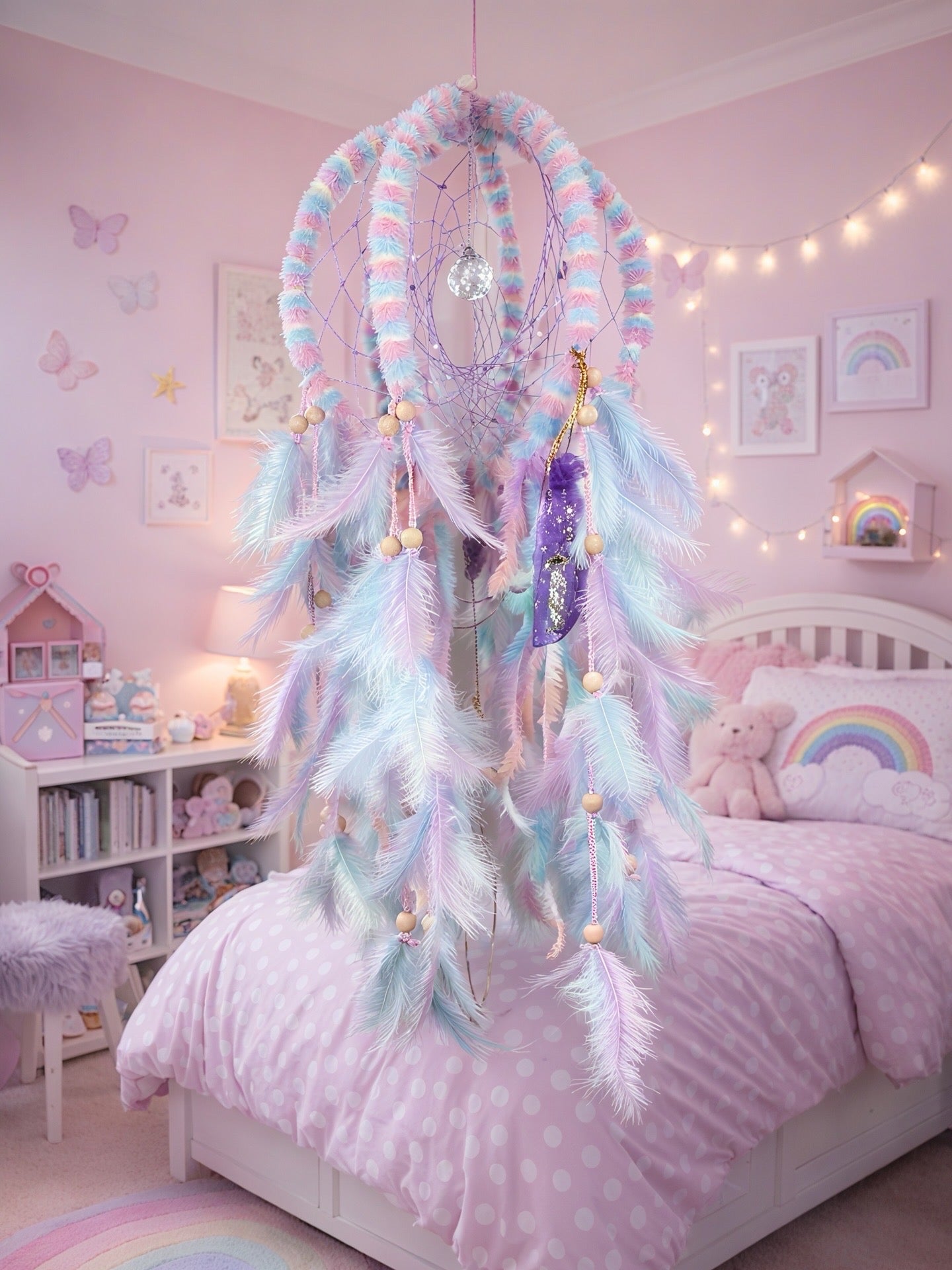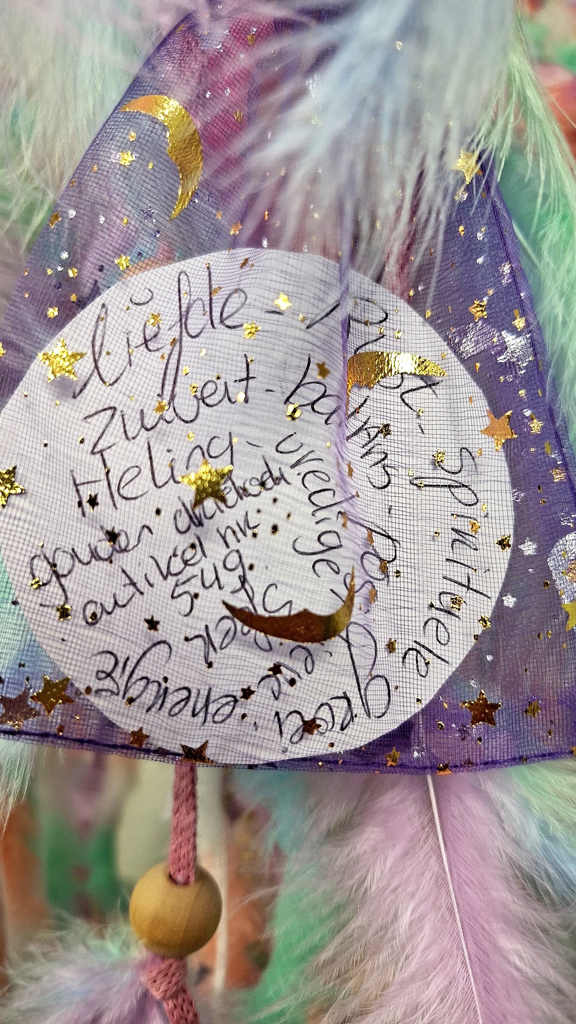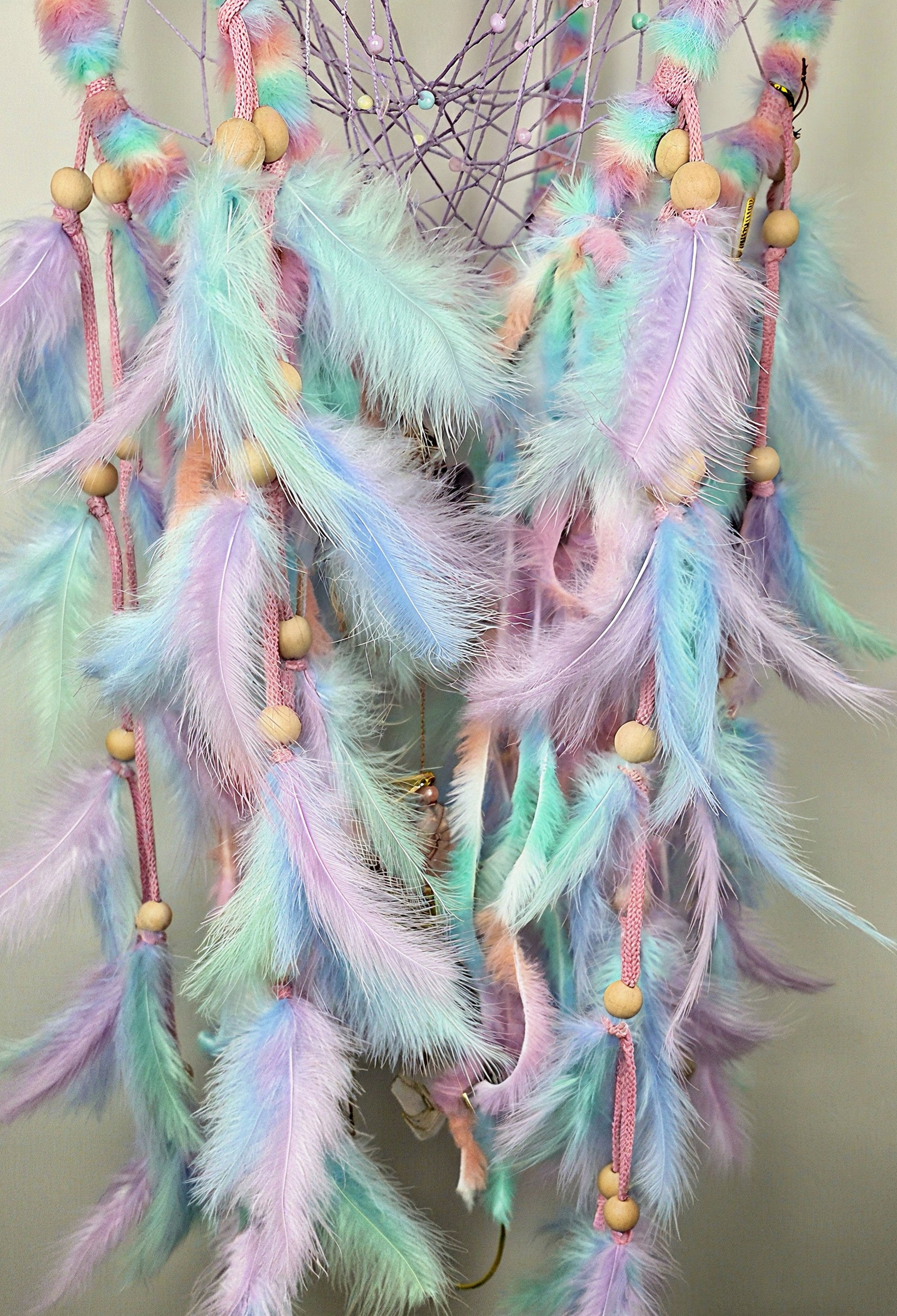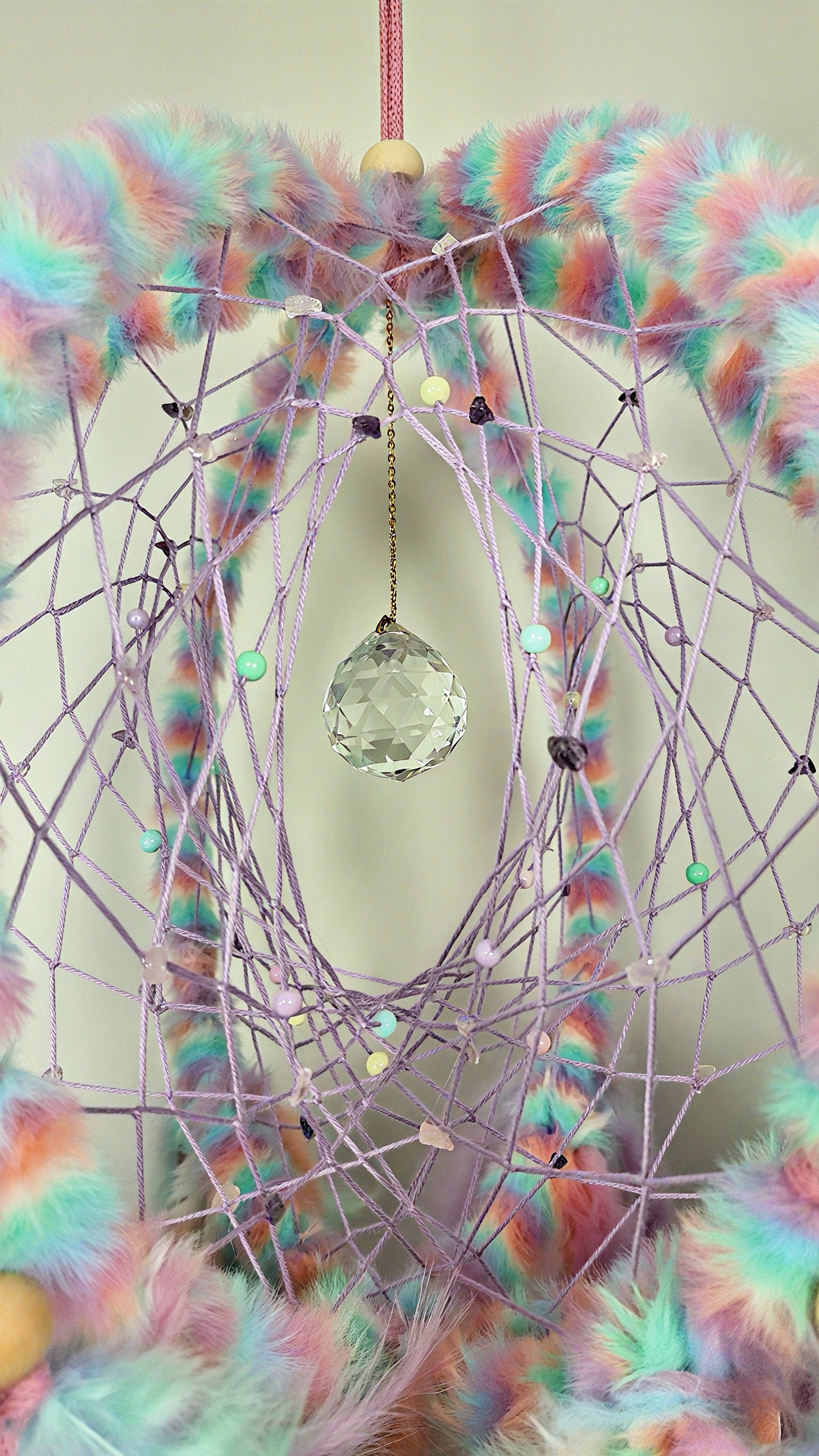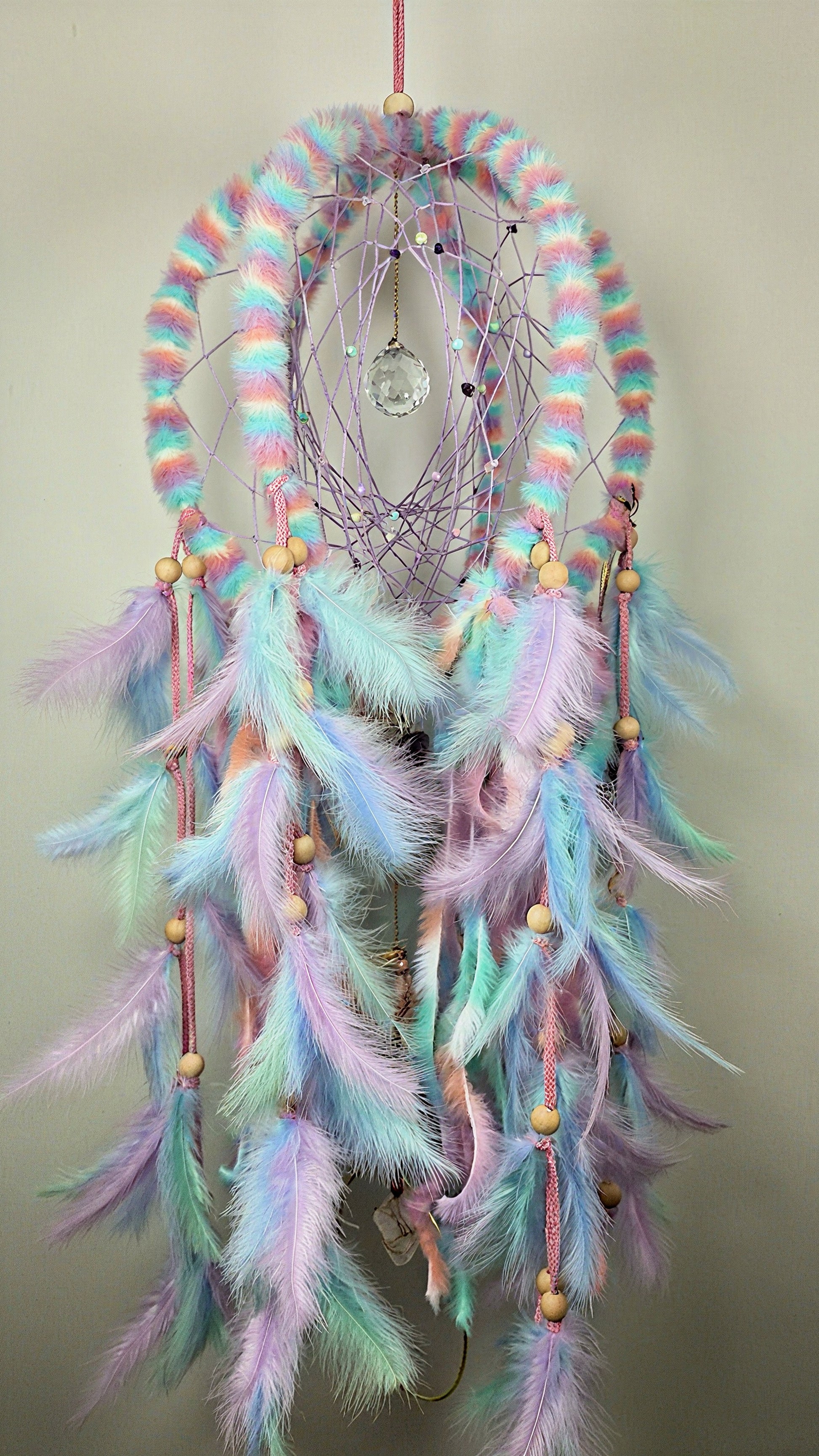 Deze droomvanger bevat diverse kleuren, veren en kralen. Mooi voor in huis of als cadeau.